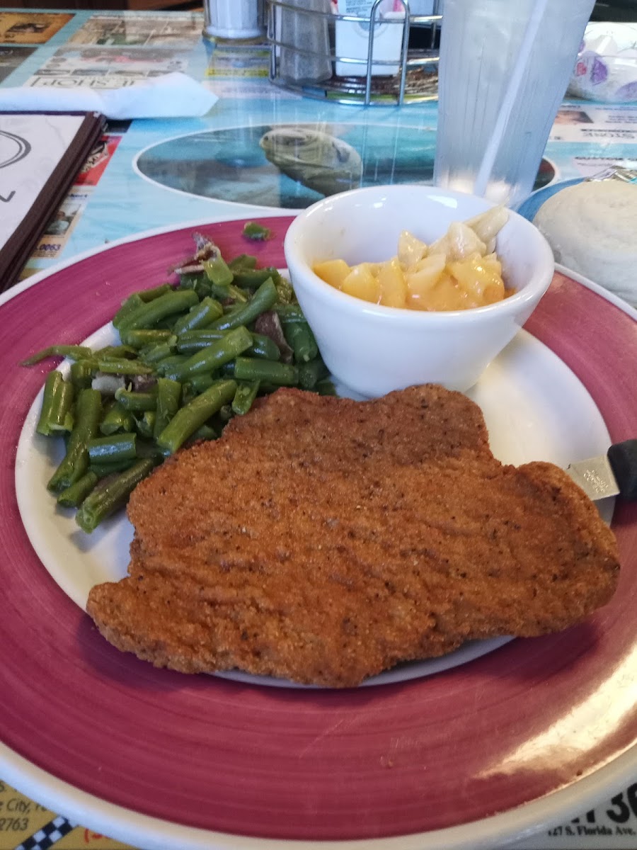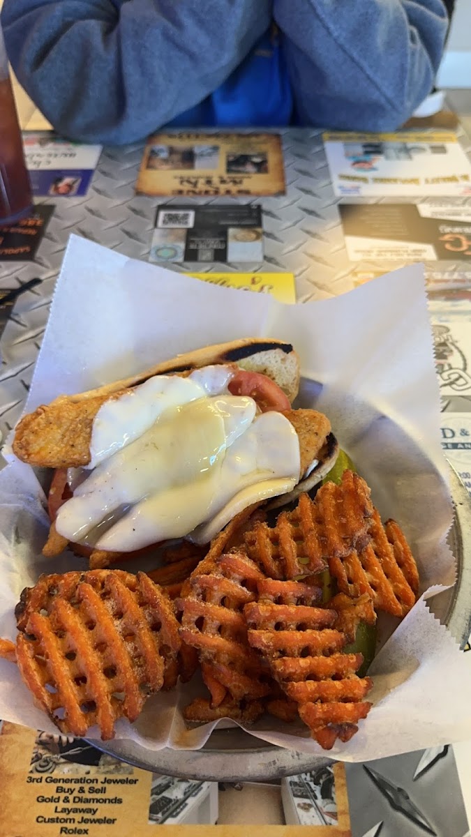 I will definitely say that this was a good experience, even with the lunch rush crowd! Service was awesome, the waitress was so nice and very attentive. The atmosphere was great as well, you can tell it’s definitely a local hangout. The food was good and came out quickly. My husband had the Southwestern burger, which he thoroughly enjoyed! He said the fries were not his favorite, but I enjoyed the fries. I had the chicken tenders to share with my one year old son and they were decent, hot and crisp. The only part of my meal that I didn’t really enjoy was the macaroni and cheese. It was a very thin cheese sauce on top and the noodles stuck together so it was just on giant noodle clump with a little cheese taste. But if that was the worst part of my experience, then I’ll take it! Overall, highly recommend and if I’m in the area again I might go for some of the delicious looking pancakes I saw coming out of the kitchen!